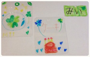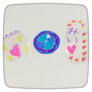 ①プラスチックの薄い板に油性ペンでお絵かきする