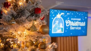 周りの木々が雪景色でとても幻想的だった。